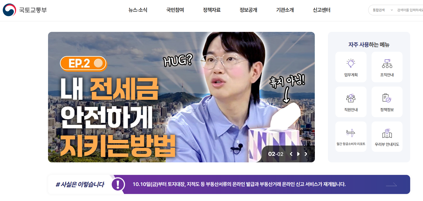 7️⃣ 국토교통부 홈페이지 (보도자료)