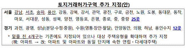 → 강남, 서초, 송파, 용산 → 투기과열지구 유지 - 경기도